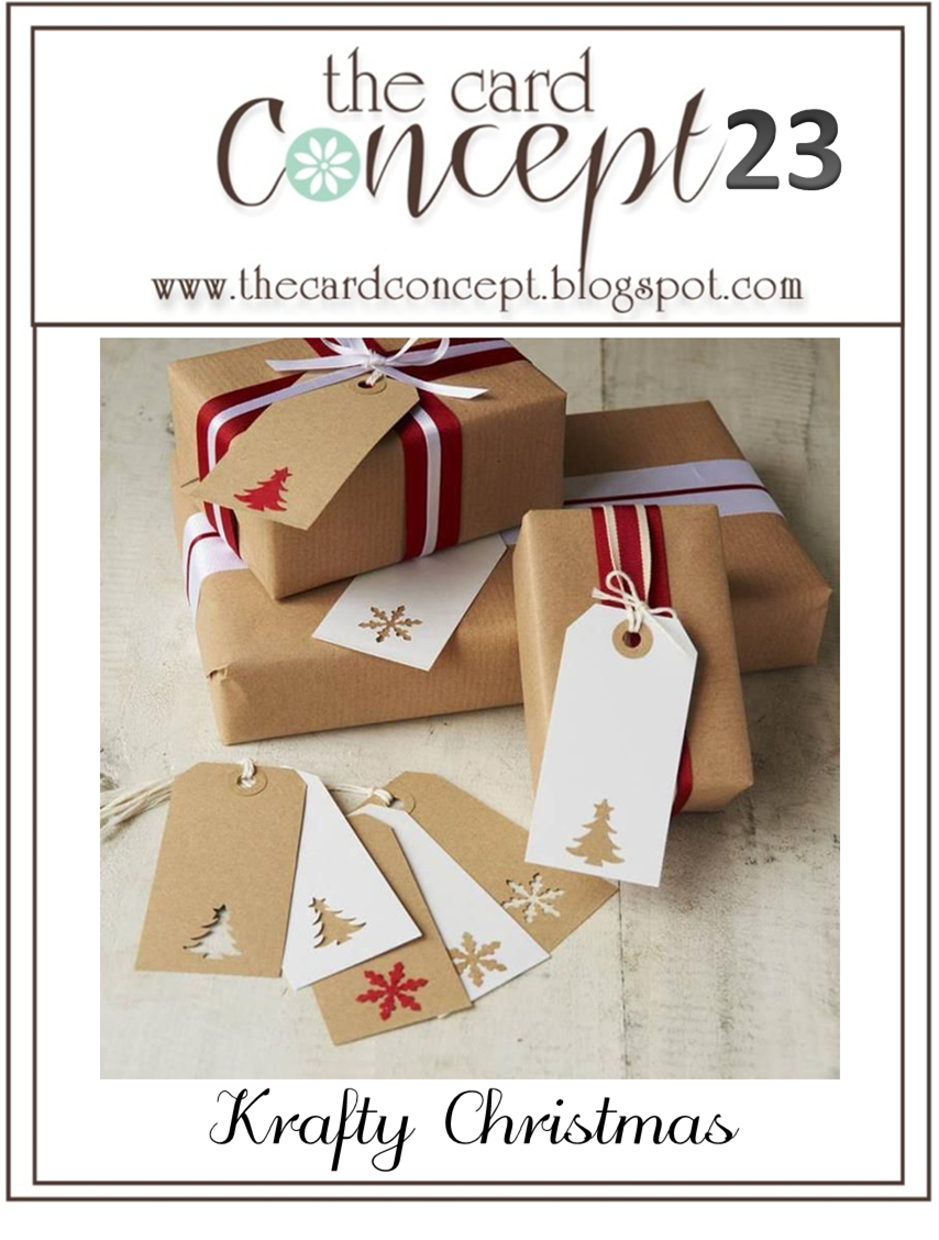 The Card Concept has just introduced the lovely Kristie Goulet as their newest designer... fabulous!  Love Kristie's style and her cards are really gorgeous.  Well, I had to play along!  It wasn't a chore as I adore kraft card stock and made too many to mention for Christmas giving this year.  Here is the inspiration photo: