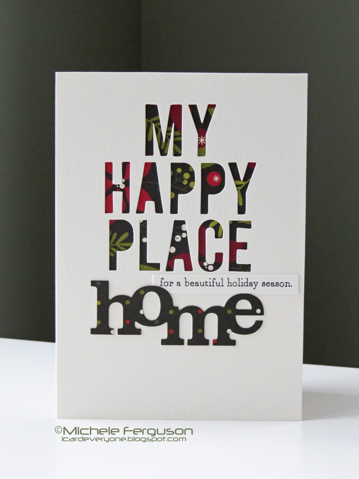 My card started with a 5x7"die cut card front from Heidi Swapp- "MY HAPPY PLACE" was pre-cut! All I added is a few special words from PTI, and W&W's precious HOME.