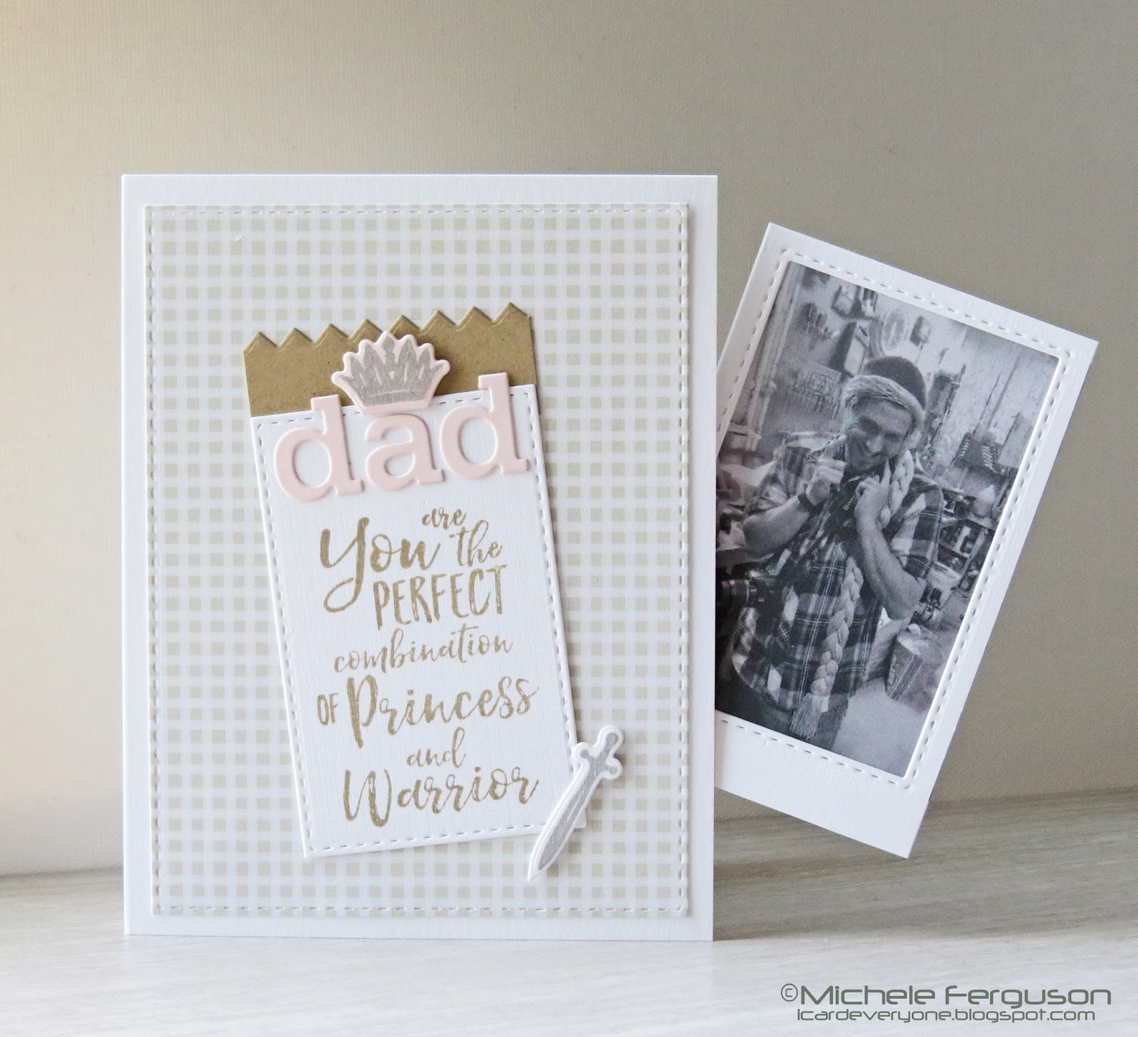 What a great card for a guy with a good sense of humor! I'm sure he's going to love it, Michele! The crown and sword are such fun elements and your checked papers are perfect! (are they PTI?)