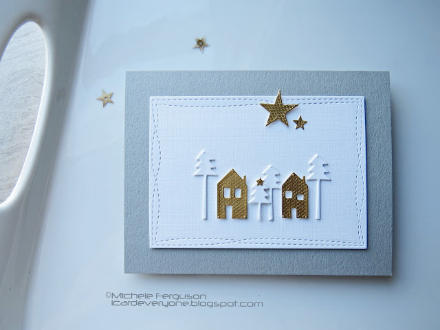 Oh my, Michele, I am absolutely in love with this card! Grey with white and gold, those darling houses and trees and a few stars... Pure perfection in my eyes! Those dies are on my wish list...