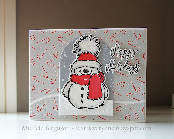 Awww, what a sweet little snowman! Love the darling candy cane paper too. Delightful card, Michele!